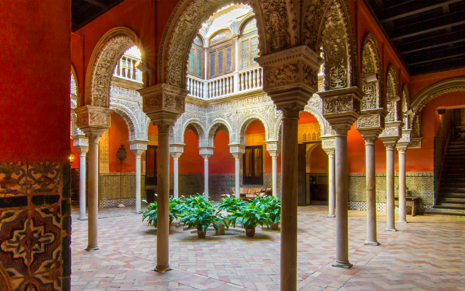 - Aufwändige Details: Bestaunen Sie die exquisiten handbemalten Kacheln und komplizierten Holzarbeiten, ein Zeugnis der Handwerkskunst längst vergangener Epochen und ein Einblick in den opulenten Lebensstil der wohlhabenden Familien Sevillas.