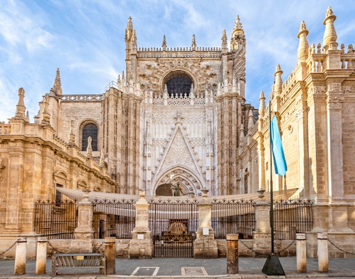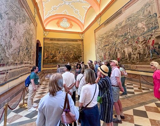 Katedralen i Sevilla er et av de mest besøkte landemerkene i Spania, med over 2 millioner besøkende hvert år. I Høysesongen (mars-juni og september-oktober) kan køene ved inngangen vare i 60-90 minutter, spesielt mellom kl. 11 og 14. Inngang via Puerta del Lagarto, i nærheten av Giralda-tårnet. Køene begynner ofte å danne seg før Åpningstider og snor seg rundt Patio de los Naranjos, noe som skaper lange forsinkelser for besøkende som ikke har reservert plass. Med begrensede skyggefulle områder og stigende middagsvarme kan ventetiden være ubehagelig, noe som gjør Hopp over køen-tilgang til et tidsbesparende og stressfritt valg.