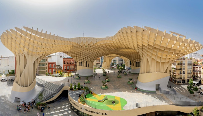 Setas de Sevilla holds the record for the largest wooden structure ever built — 150 metres long, 70 metres wide, and 28 metres tall, made from over 3,400 bonded timber modules.